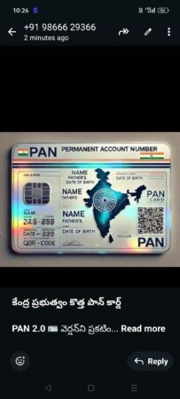 కేంద్ర ప్రభుత్వం కొత్త పాన్ కార్డు…కేంద్ర ప్రభుత్వం కొత్త పాన్ కార్డ్ 2.0 🪪 వెర్షన్ని ప్రకటించింది. అయితే దీని కోసం ప్రజలు ఏమీ చేయనవసరం లేదు, కేంద్ర ప్రభుత్వం ప్రవేశపెట్టి కొత్తగా అప్డేట్ చేసిన పాన్ కార్డ్ని ప్రభుత్వం నేరుగా మీ చిరునామాకు పంపుతుంది. సామాన్య ప్రజలు ఆందోళన చెందవద్దని ప్రజలు అప్రమత్తంగా ఉండాలని పాన్ కార్డ్ అప్డేట్ కోసం ఎటువంటి ఫోన్లు కానీ మెసేజ్లు కానీ మెయిల్లకు సమాధానం ఇవ్వవద్దని ఏదైనా సమాచారం గుర్తుతెలియని వ్యక్తులకు ఫోన్ కాల్స్ కు ఎవరికి సమాధానం ఇవ్వద్దని ఓ,టీ,పీ,లను కూడా చెప్పవద్దని జాగ్రత్త వహించి, సైబర్ క్రైమ్ మోసాలను నివారించే క్రమంలో ప్రజలు అప్రమత్తంగా ఉండాలని కేంద్ర ప్రభుత్వం తీసుకున్న ఈ నిర్ణయం మేరకు ప్రజలు జాగ్రత్త వహించాలని అన్నారు.