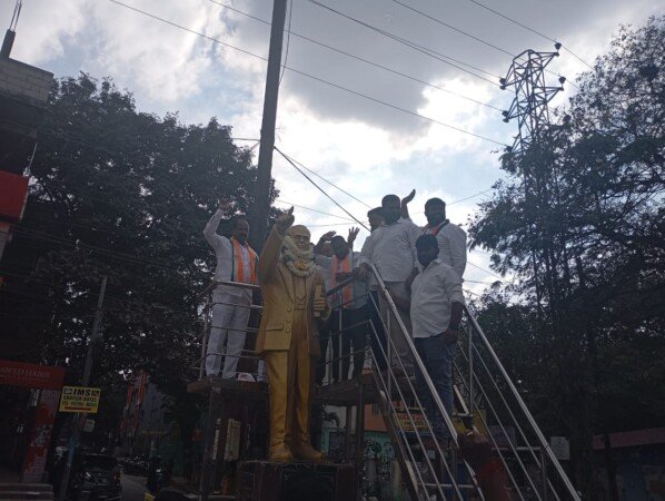 కేంద్ర హోంమంత్రి అమిత్ షా నిండు సభలో డాక్టర్ బి.ఆర్ అంబేద్కర్ పై చేసిన అనుచిత వ్యాఖ్యలను ఖండిస్తూ నిరసనగా గురువారం రోజు చందానగర్ డివిజన్ పరిధిలో ఉన్న అంబేద్కర్ విగ్రహం వద్ద కాంగ్రెస్ నాయకుడు సోషల్ మీడియా కన్వీనర్ కవిరాజ్ పిలుపుమేరకు తెలంగాణ రాష్ట్ర ఎంబీసీ చైర్మన్ జెరిపేటి జైపాల్, శేరిలింగంపల్లి కాంగ్రెస్ పార్టీ ఇంచార్జ్ జగదీష్ గౌడ్, కాంగ్రెస్ నాయకులతో కలిసి జాతీయ రహదారిపై అమిత్ షా దిష్టిబొమ్మను దగ్ధం చేశారు. అనంతరం అంబేద్కర్ విగ్రహానికి పూలమాలలు వేసి పాలాభిషేకం నిర్వహించారు. ఈ కార్యక్రమానికి శేర్లింగంపల్లి కాంగ్రెస్ నాయకులు పెద్ద సంఖ్యలో హాజరై నిరసన వ్యక్తం చేశారు. అనంతరం ఎంబీసీ చైర్మన్ జెరిపేటి జైపాల్ జైపాల్ మాట్లాడుతూ. అమిత్ షా చేసిన వ్యాఖ్యలను ఖండిస్తూ తక్షణమే ప్రధానమంత్రి మోడీ స్పందించి అమిత్ షా పై చర్యలు తీసుకొని క్షమాపణలు చెప్పించాల్సిందిగా కోరారు. అదేవిధంగా అమిత్ షా మంత్రి పదవికి రాజీనామా చేయాలని డిమాండ్ చేశారు. ఈ కార్యక్రమంలో శేరిలింగంపల్లి కాంగ్రెస్ పార్టీ కార్యకర్తలు, నాయకులు పెద్ద ఎత్తున పాల్గొన్నారు.